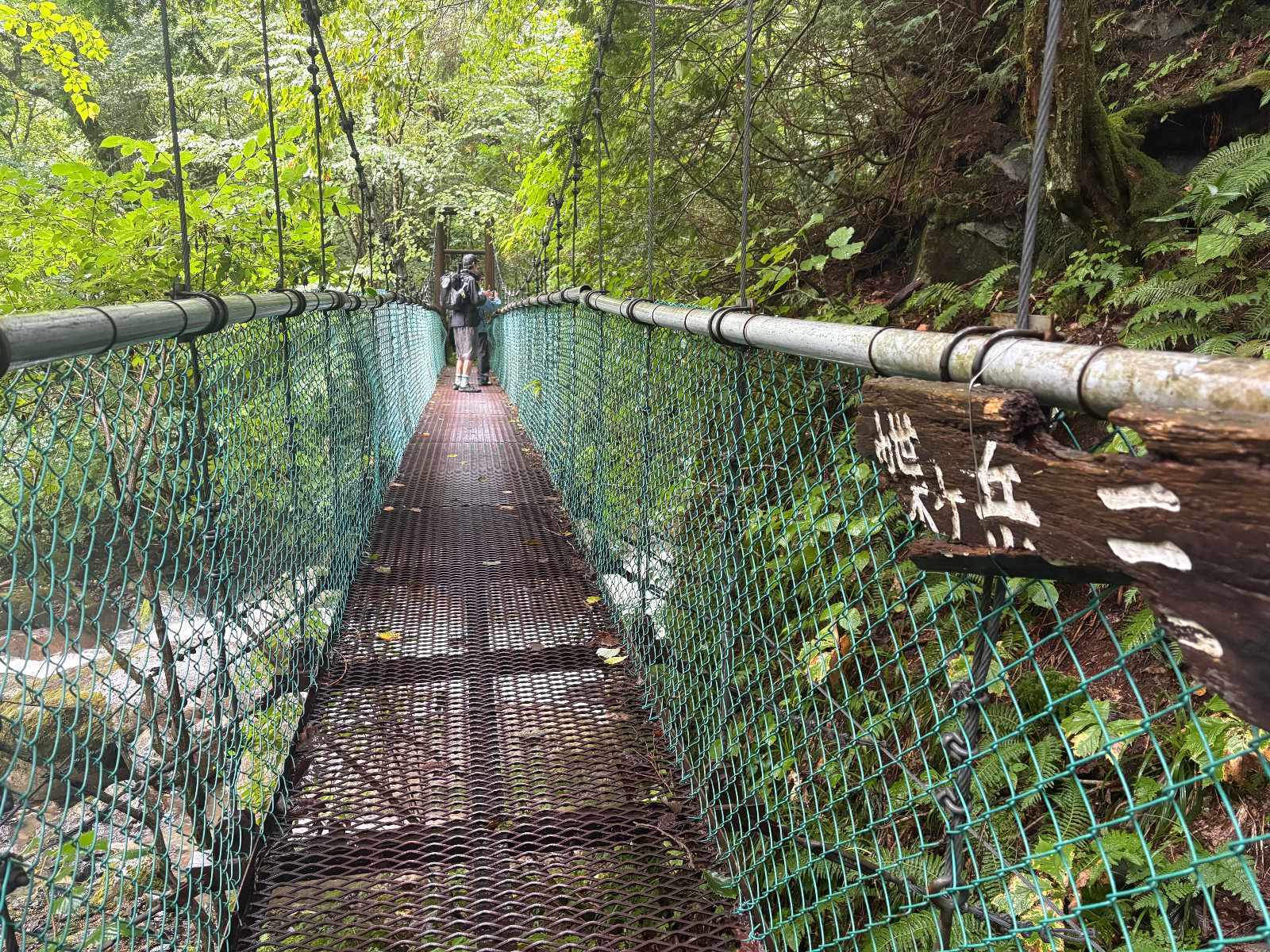 「結構揺れるよ」とお客様より聞いていたつり橋に到着。