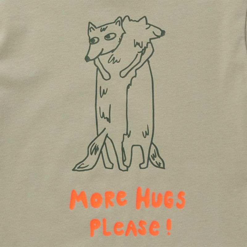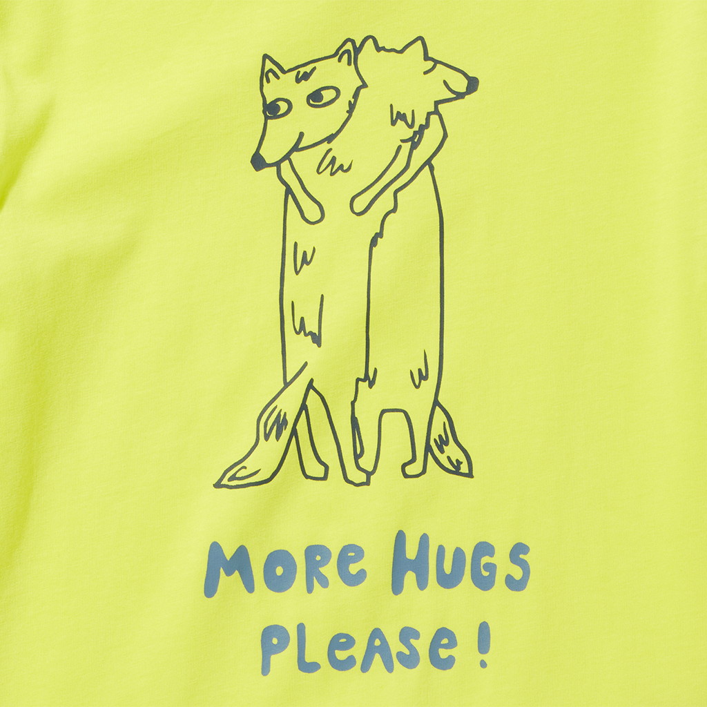 フロントには可愛らしいタッチで描かれたハグするウルフのグラフィックプリント。