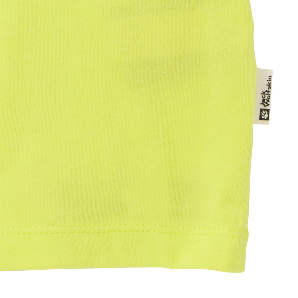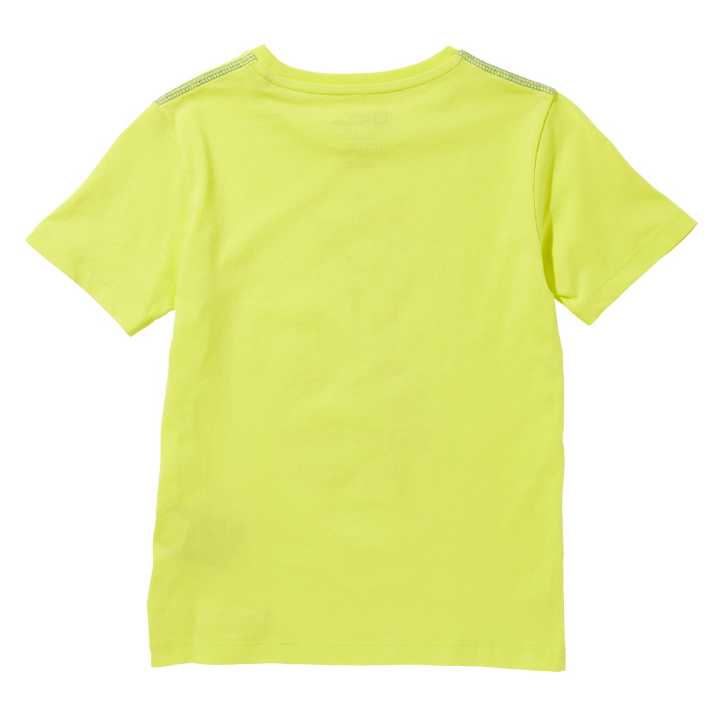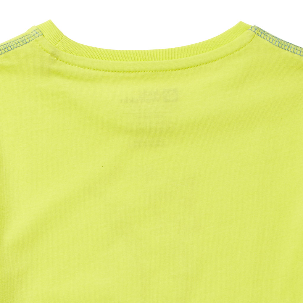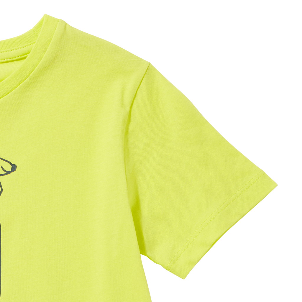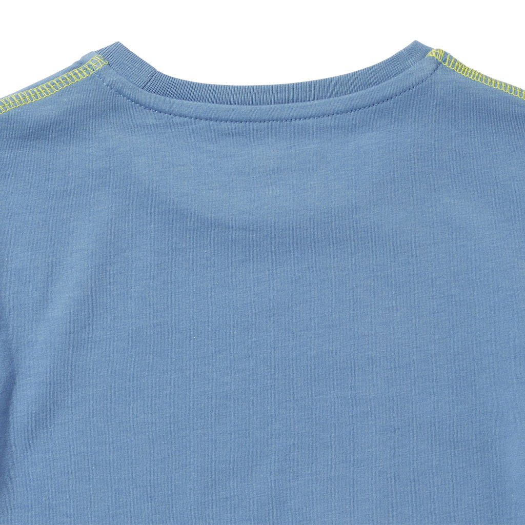 肩口の配色シームもポップなカラーリングに華を添える、キッズサイズのクルーネックTシャツです。