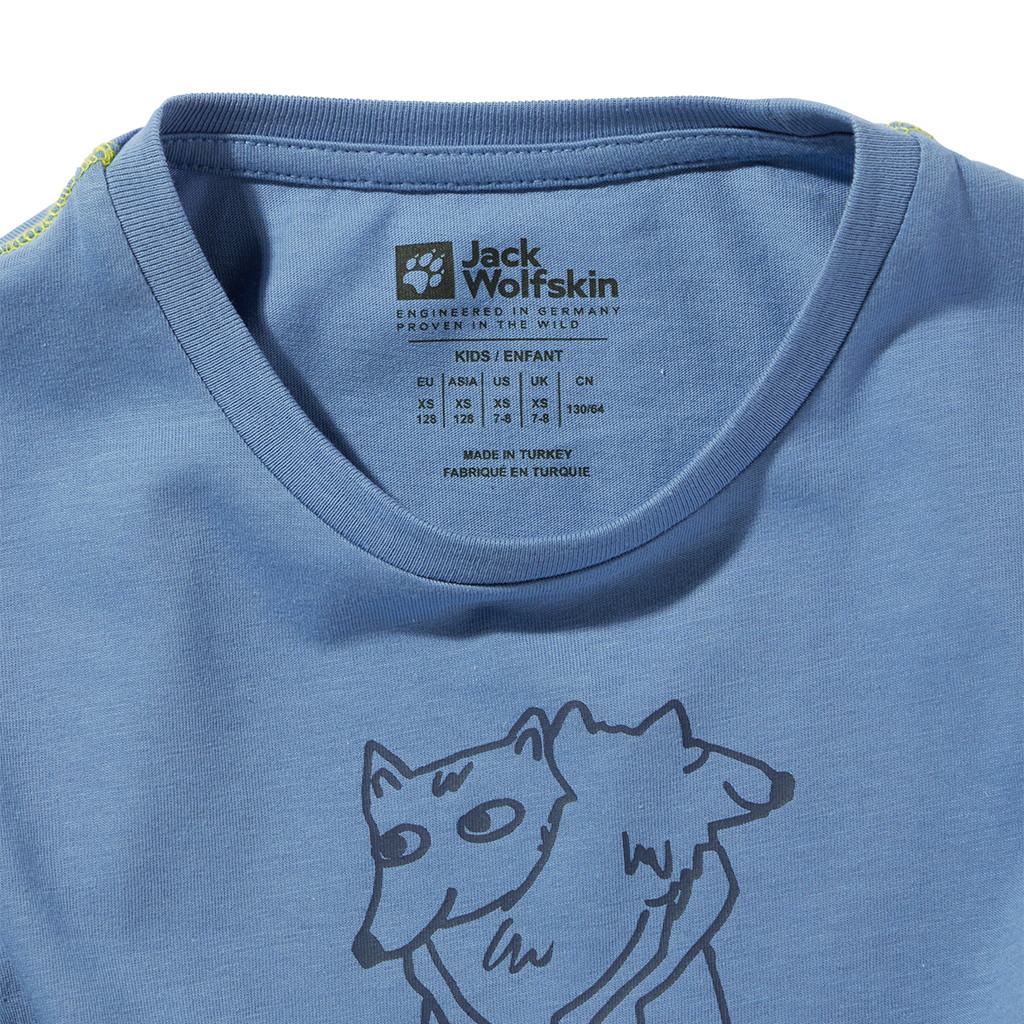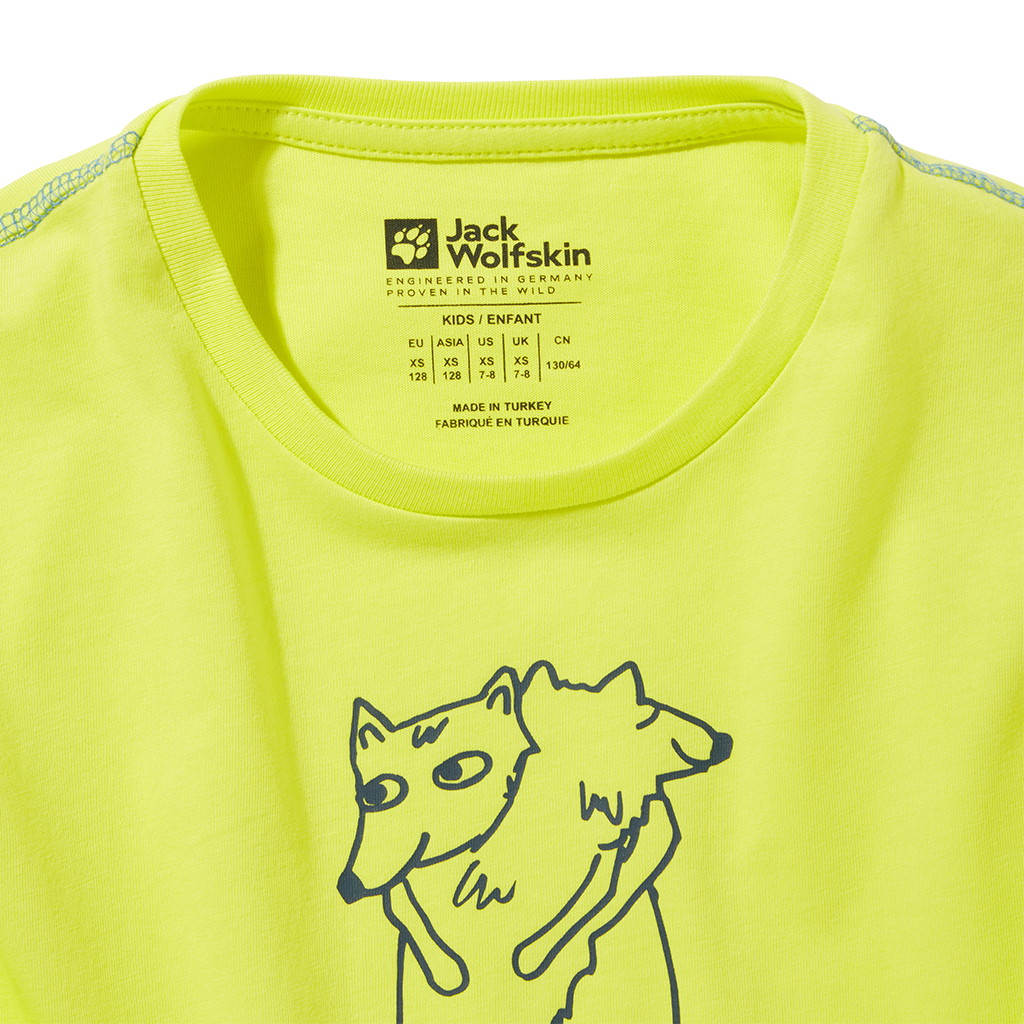 抱き合う狼が描かれたナイスなキッズTシャツ。
