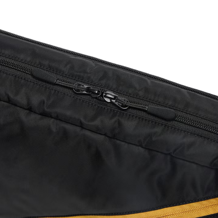 オールブラックにイエローの斜めラインが目を引くデザインも魅力的。