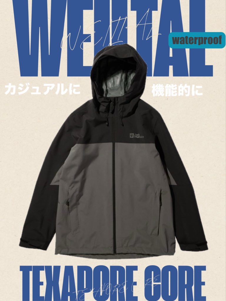 オリジナルの防水透湿テクノロジー、テキサポール・コアを採用した、しなやかな質感の2レイヤーシェルジャケットです。