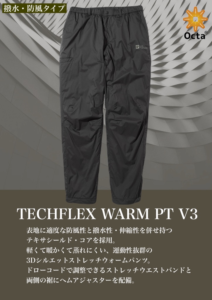 軽くて暖かくて蒸れにくい、動きやすい3Dシルエットのストレッチウォームパンツです。