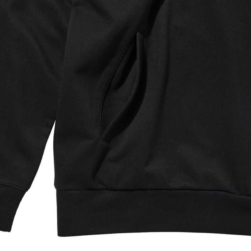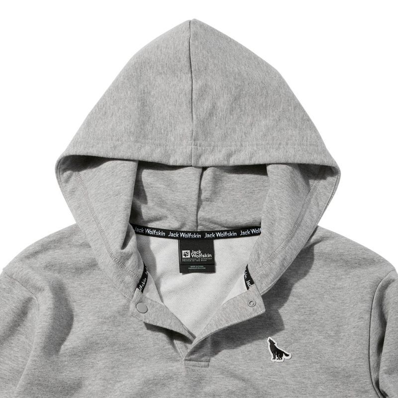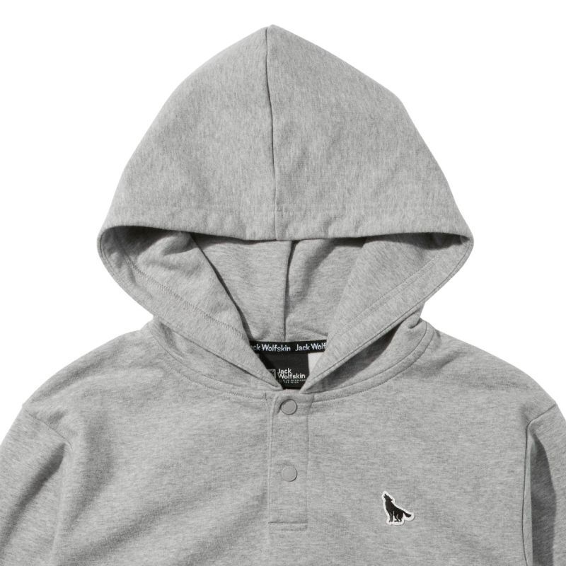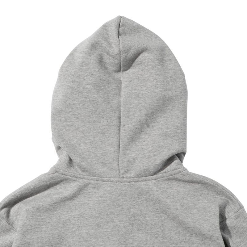 首下にあしらったボタンオープンも特徴的な、ユニセックス展開のスウェットフーディーです。