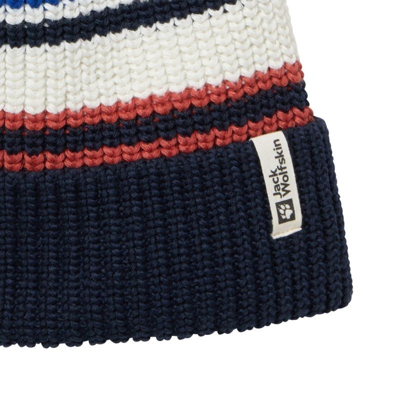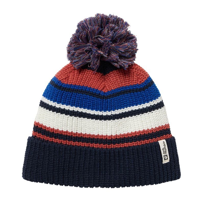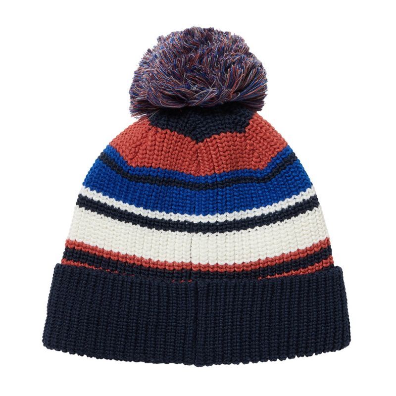 トップのポンポンのあしらいもキュートな、マルチボーダーキッズビーニーです。