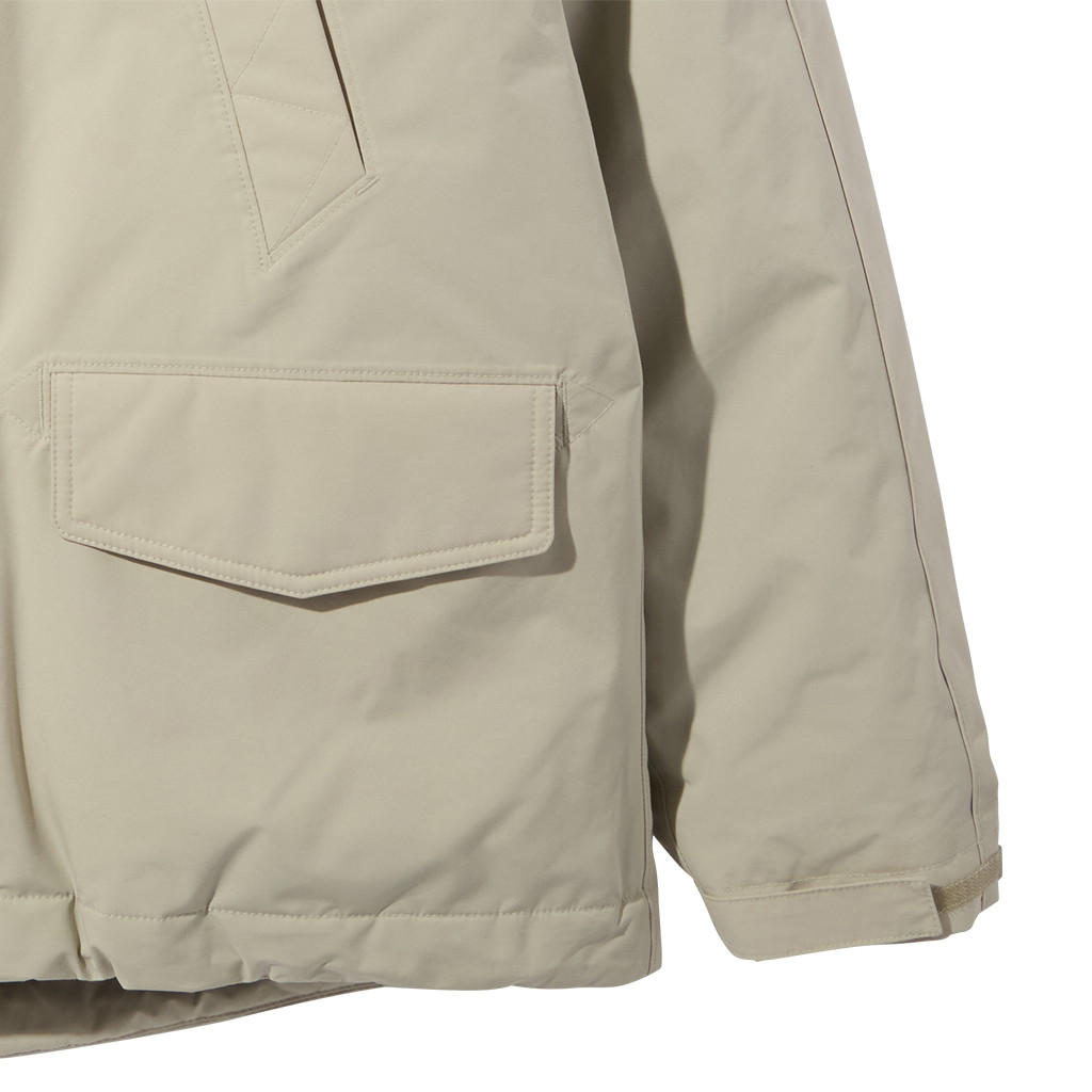 表地、裏地、メンブレンはリサイクル素材で仕立てた、ハイスペックかつサステナブルな1枚です。