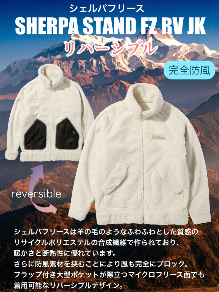 ■防風フリースリバーシブル表面(ボア)