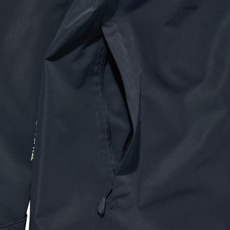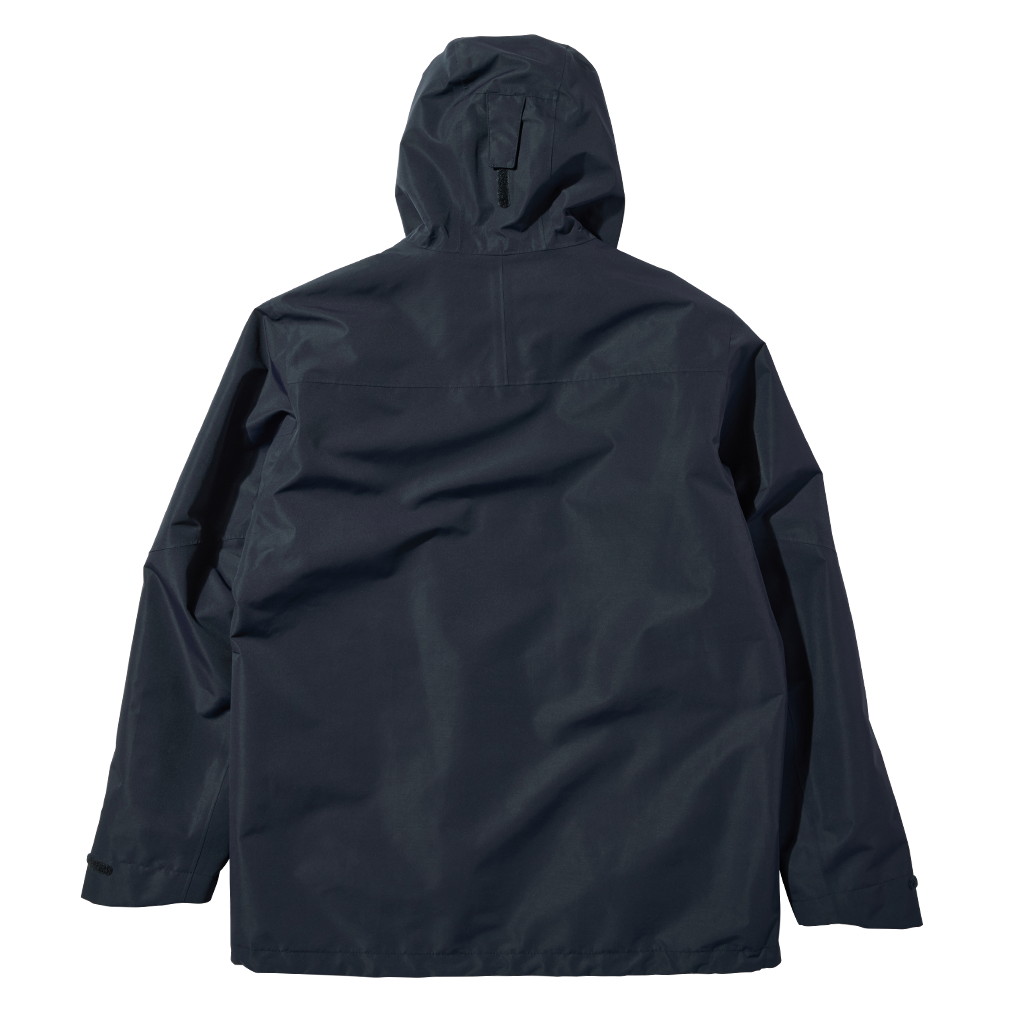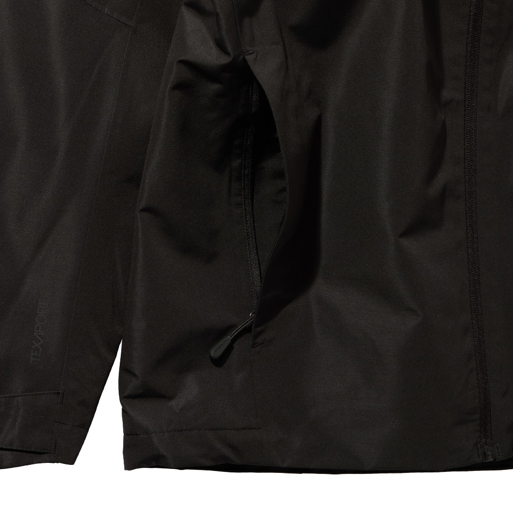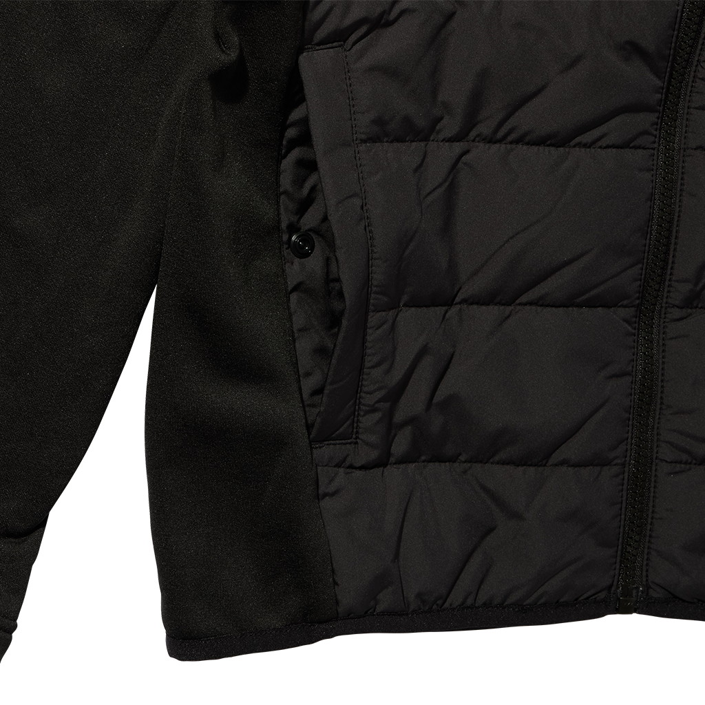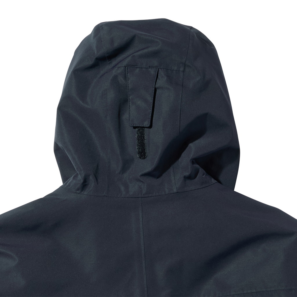 独自開発の防水透湿機能テキサポール・コアを備えるシェルに、前身頃だけを中綿パネルで切り替えた着脱ライニングを装着。