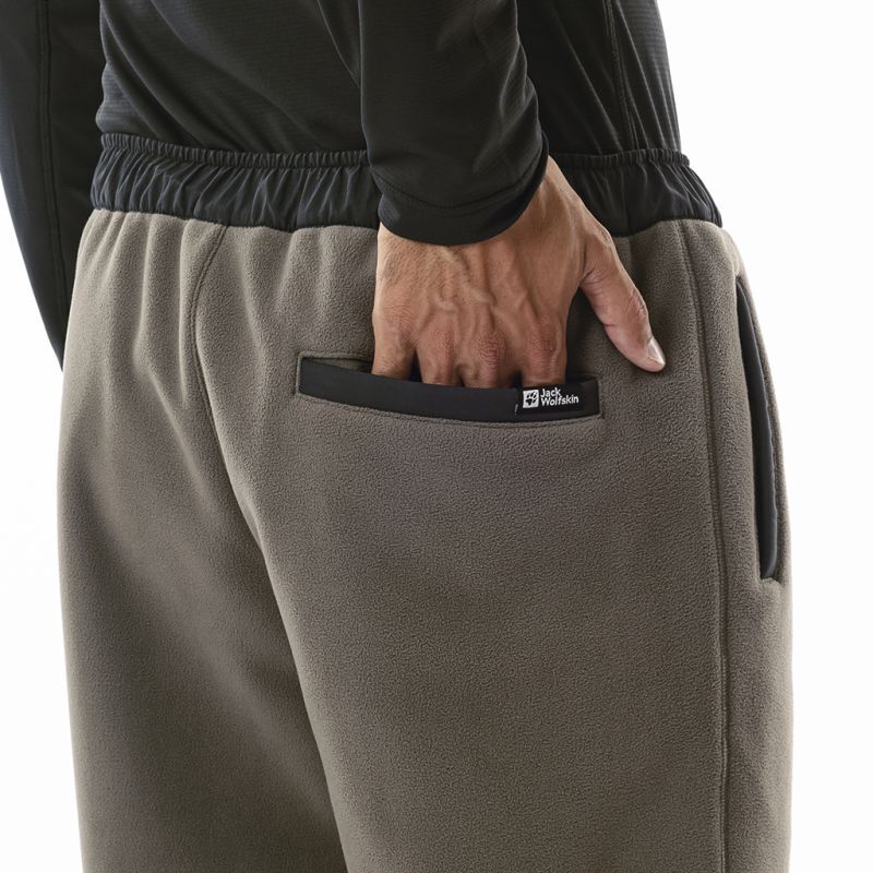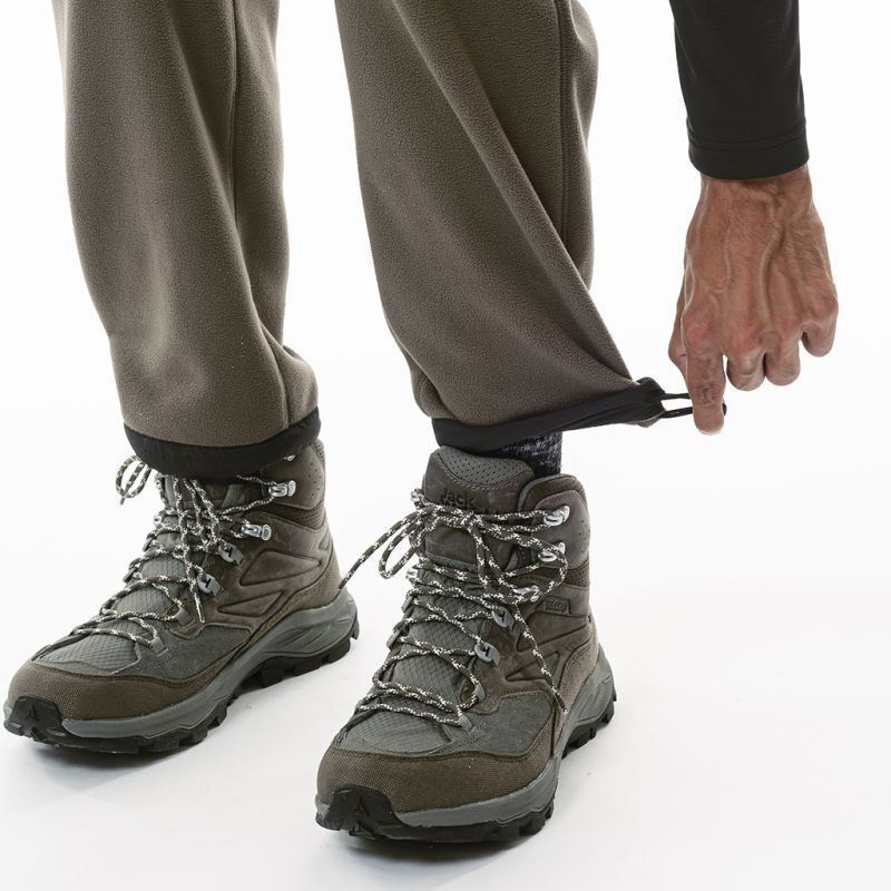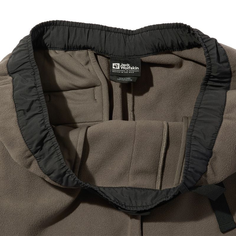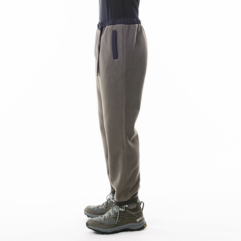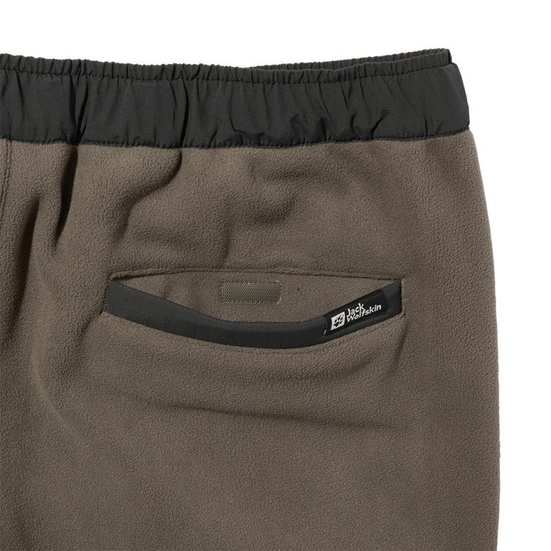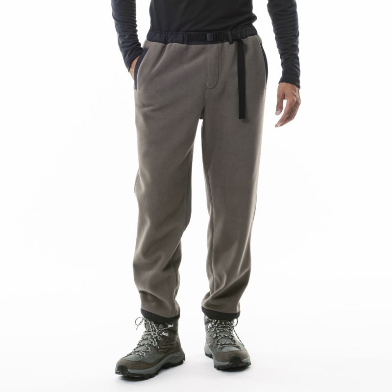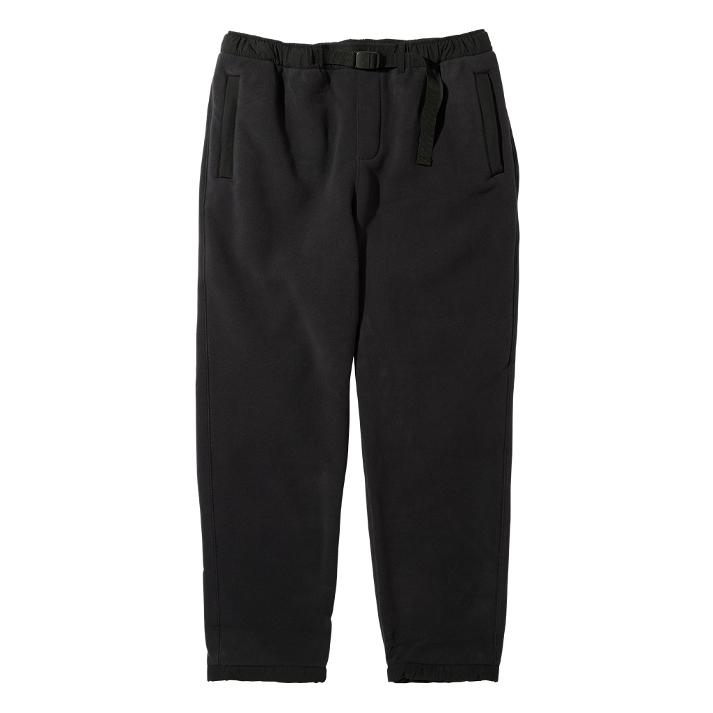 どうしてもルームウエアルックになってしまうフリースパンツですが、要所にナイロンを当てたり、