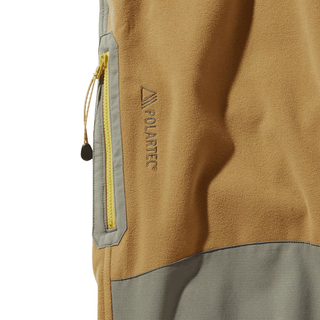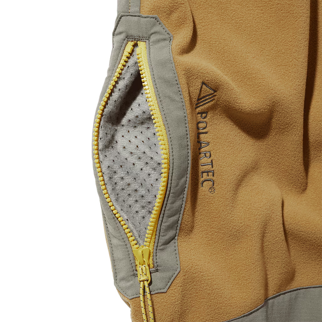 膝部分、お尻部分には風を通さないポーラテック WIND PROのナイロン素材のパッチを。