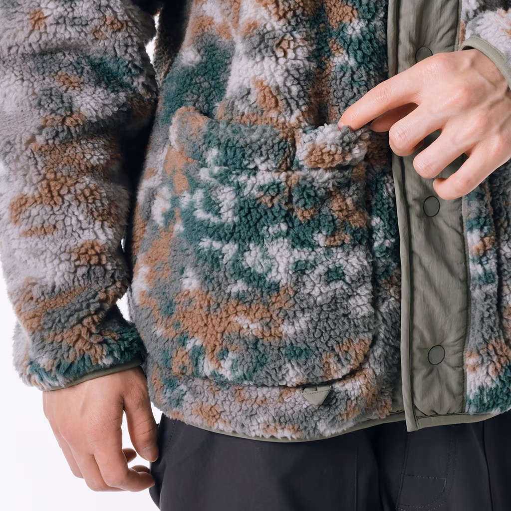 モコモコの風合いが心地良いボアフリースと、手触り柔らかなマイクロフリースを表裏で使い分け。
