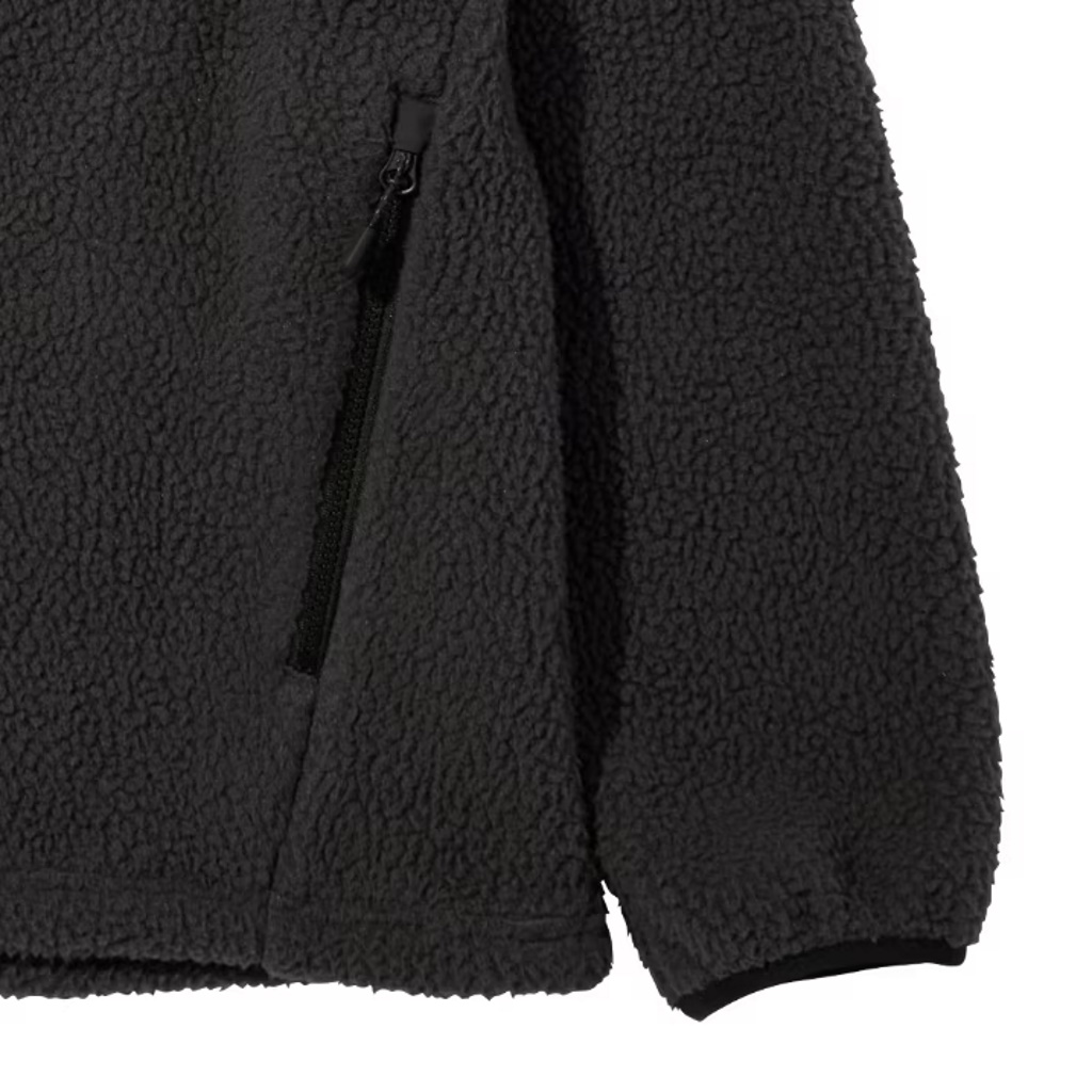 優しくやわらかな手ざわりが心地よい、リサイクルポリエステル仕立てのシェルパフリースジャケット。