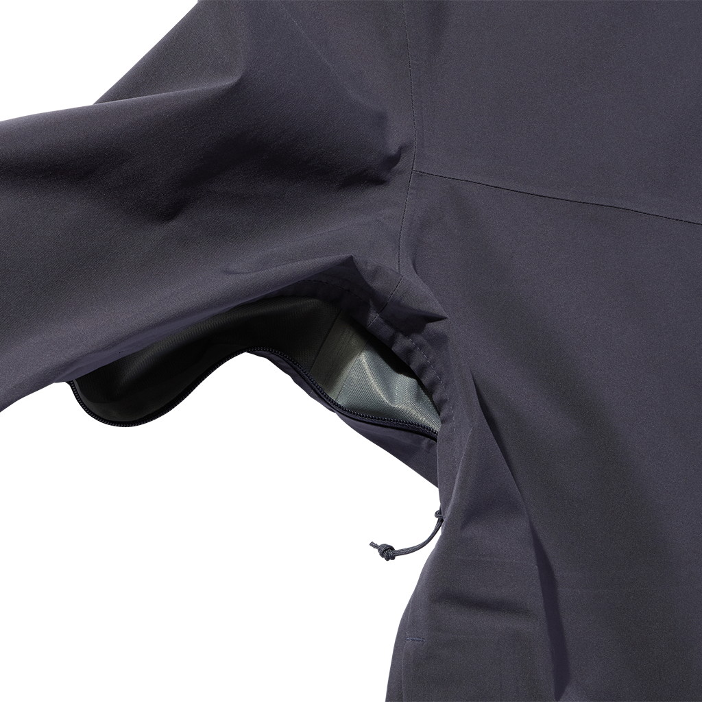 ヘルメット対応フードや脇下ベンチレーションなど、山用イクイップメントとしての完成度を研ぎ澄ませた、ストレッチ性も備える3レイヤーのアウターシェルジャケットです。