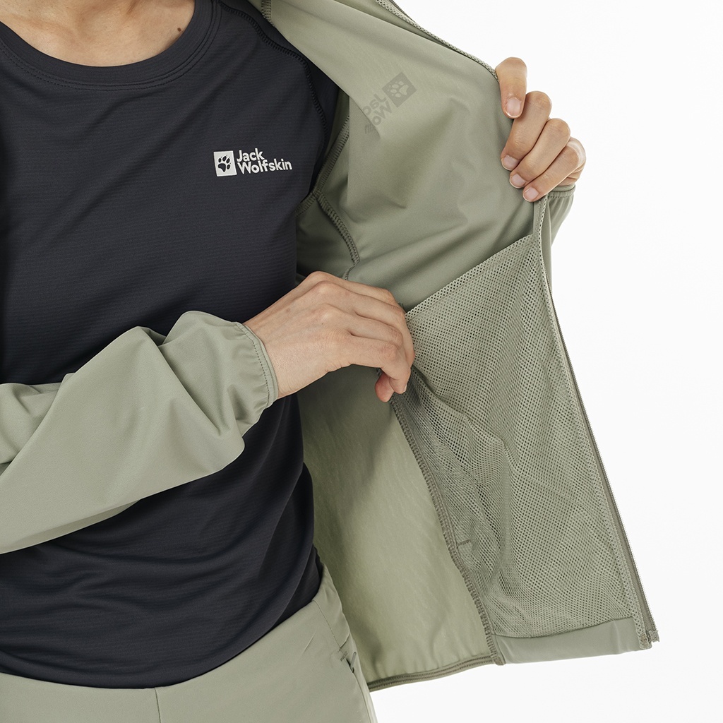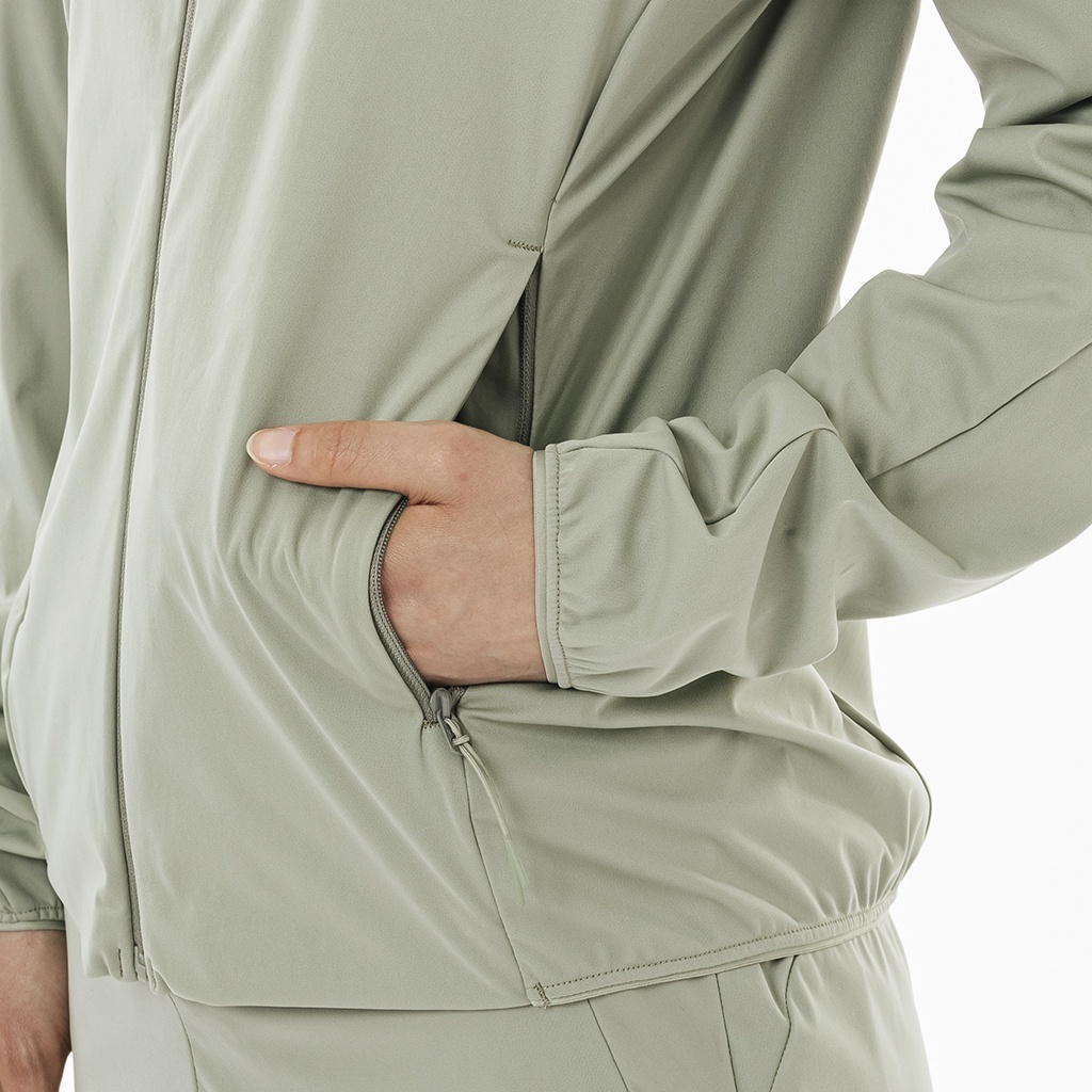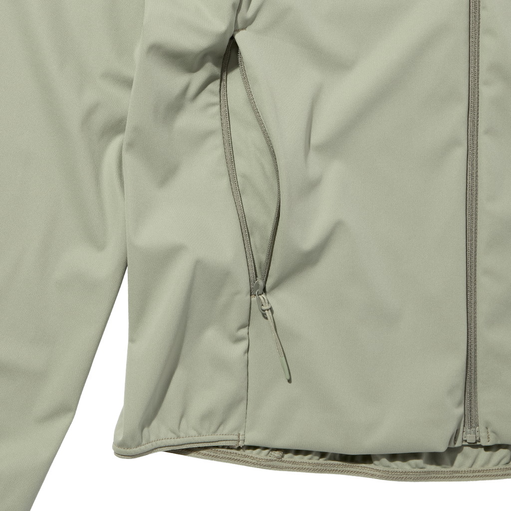 ■3レイヤー構成ながらも極薄に仕立てたストレッチ生地使いで、羽のような軽やかさを実現したウィンドシェルウィメンズジャケット