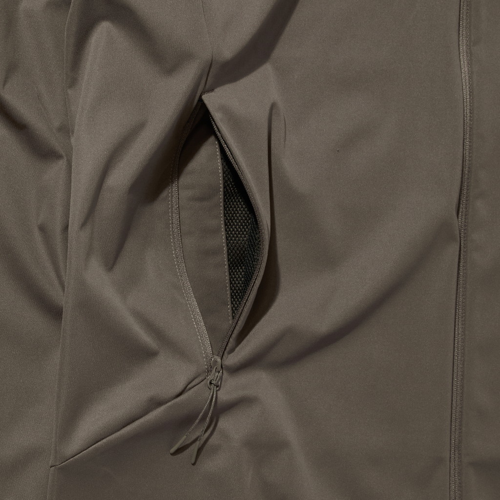3レイヤー構成ながらも極薄に仕立てたストレッチ生地使いで、羽のような軽やかさを実現したウィンドシェルジャケットです。