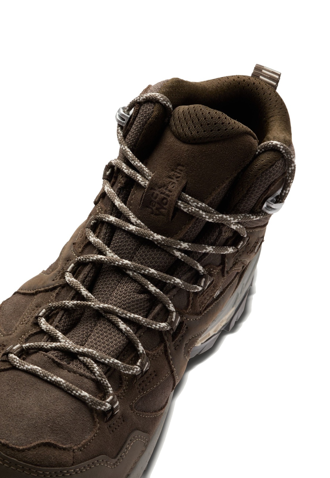 アッパーは合成繊維と天然皮革で構成し、ハイキングに必要な強度と足馴染みの良さを両立。