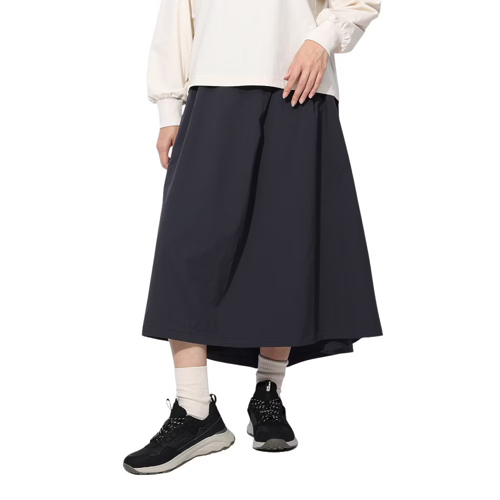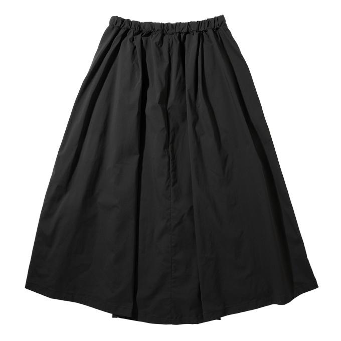 ドレープ感を作り出すシルエット、左右と背面に配したアウトタックで、フェミニンなニュアンスを演出するスカートです。