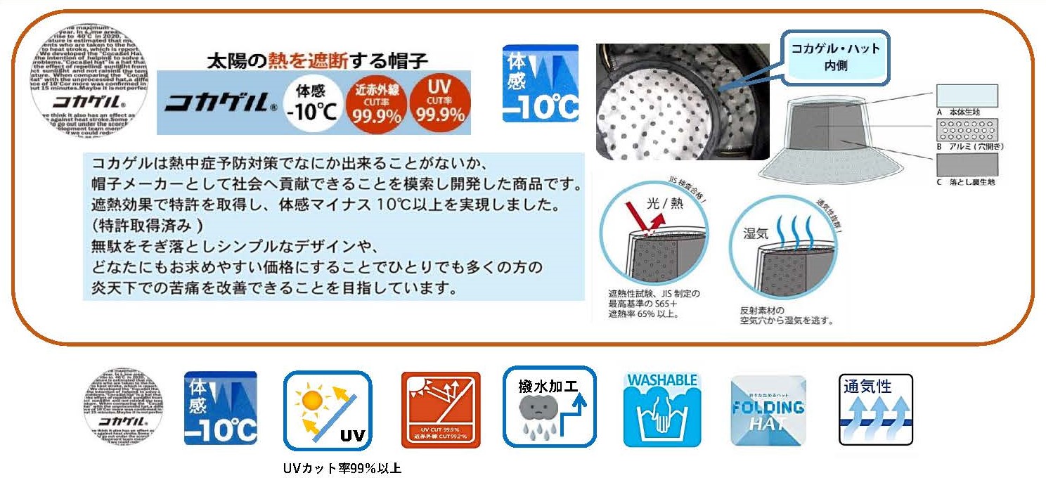 コカゲル®とは遮熱効果で特許を取得した、体感マイナス10℃以上を実現した画期的な遮熱素材です。