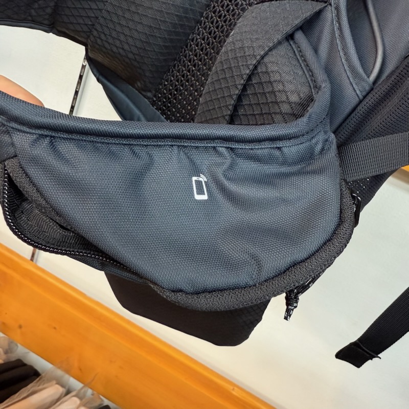 ■ヒップベルトに小物入れとスマホ収納の2気室に分かれたジッパー付きポケット