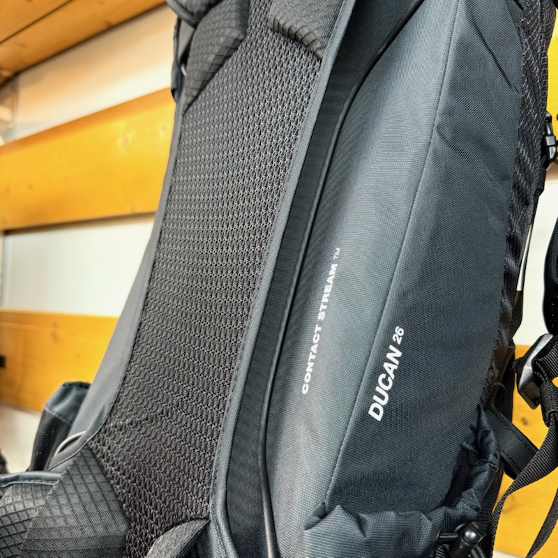 改良型の背面通気システムは、風通しを最大にする構造と接触感を抑えた背面パッドが特徴。
