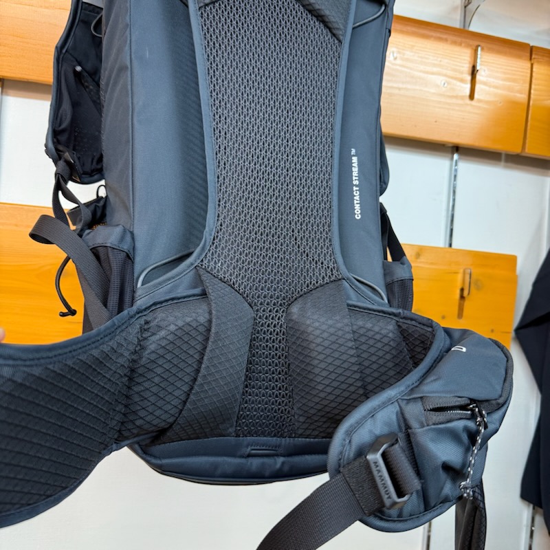 出し入れしやすいフロントメッシュポケットに加え、ウォーターボトル用のサイドポケットが複数配置されているので必要なものがすぐに取り出せ、取り外し可能なレインカバーが雨や雪から装備を守ります。