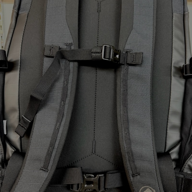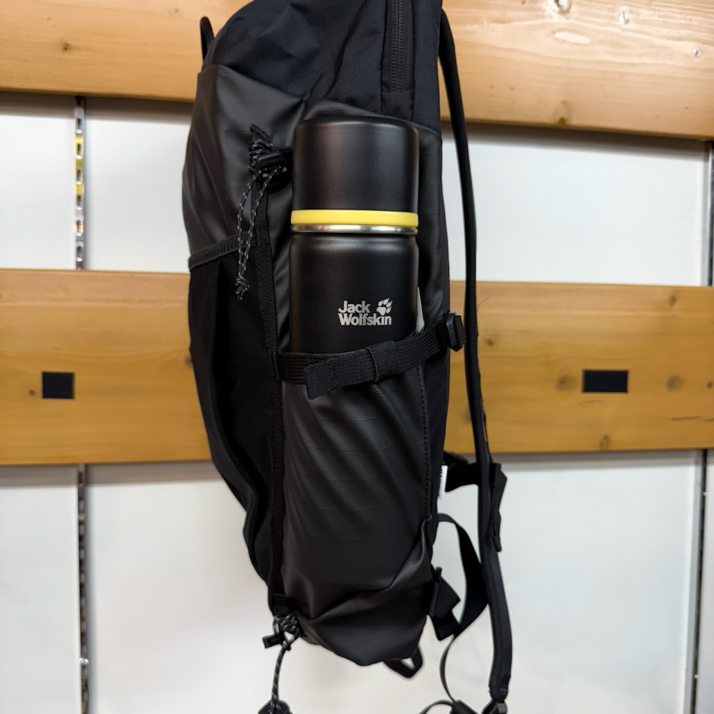 メッシュ素材のワイドなフロントポケット、両サイドのウォーターボトルホルダー、本体内側の仕切りポケットなど、収納力も抜群。
