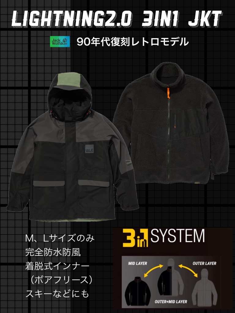 3in1 SYSTEMとは80年代から続く、ジップシステムを使用した全天候型のダブルジャケットテクノロジーです。