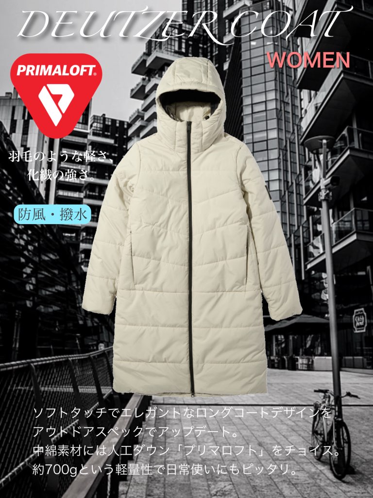 エレガントなロングコートデザインをアウトドアスペックでアップデートした、ジャック・ウルフスキンならではの1着です。
