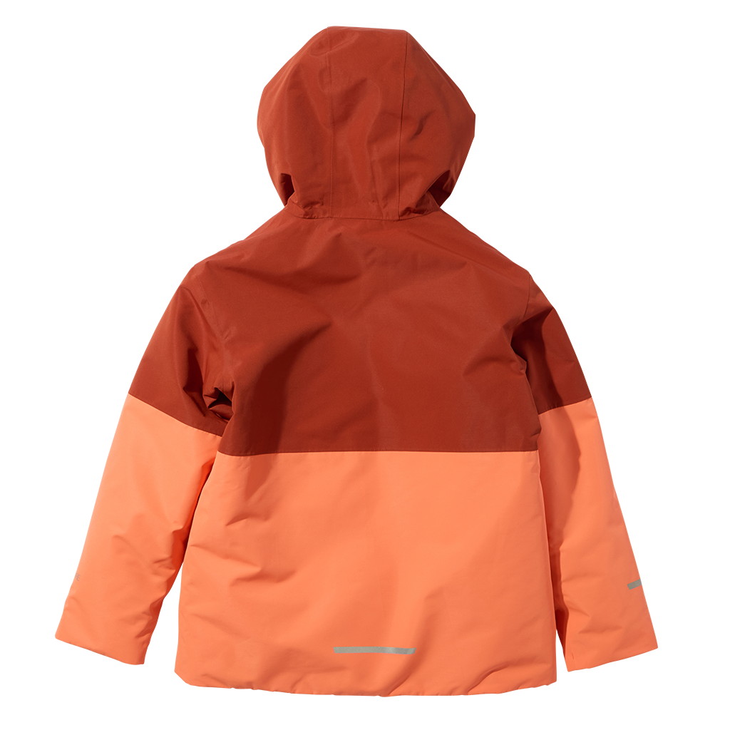 内部には中綿を充填しつつ、雪の侵入を防ぐスノースカートも搭載した、雪山対応のキッズ防水インサレーションジャケットです。