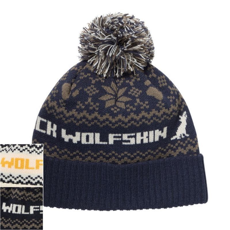 ウルフ、ポーマーク、ブランドネームと、ジャック・ウルフスキンのアイコニックなモチーフを散りばめたオリジナルスノーフレーク柄をジャカードした、秋冬らしいポンポン付きニットビーニーです。