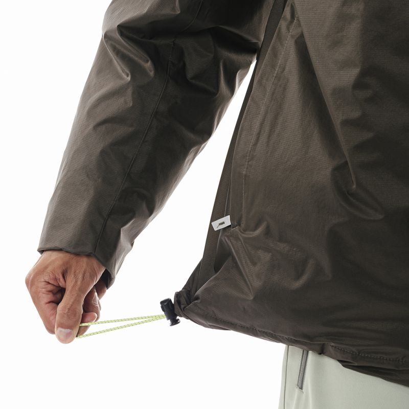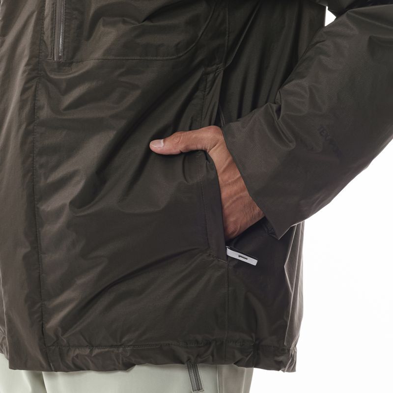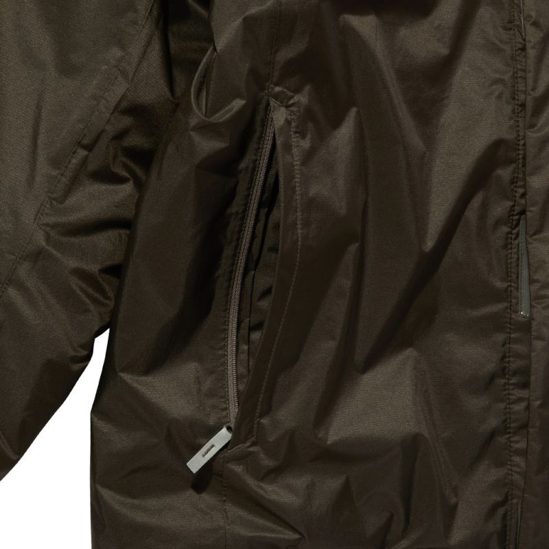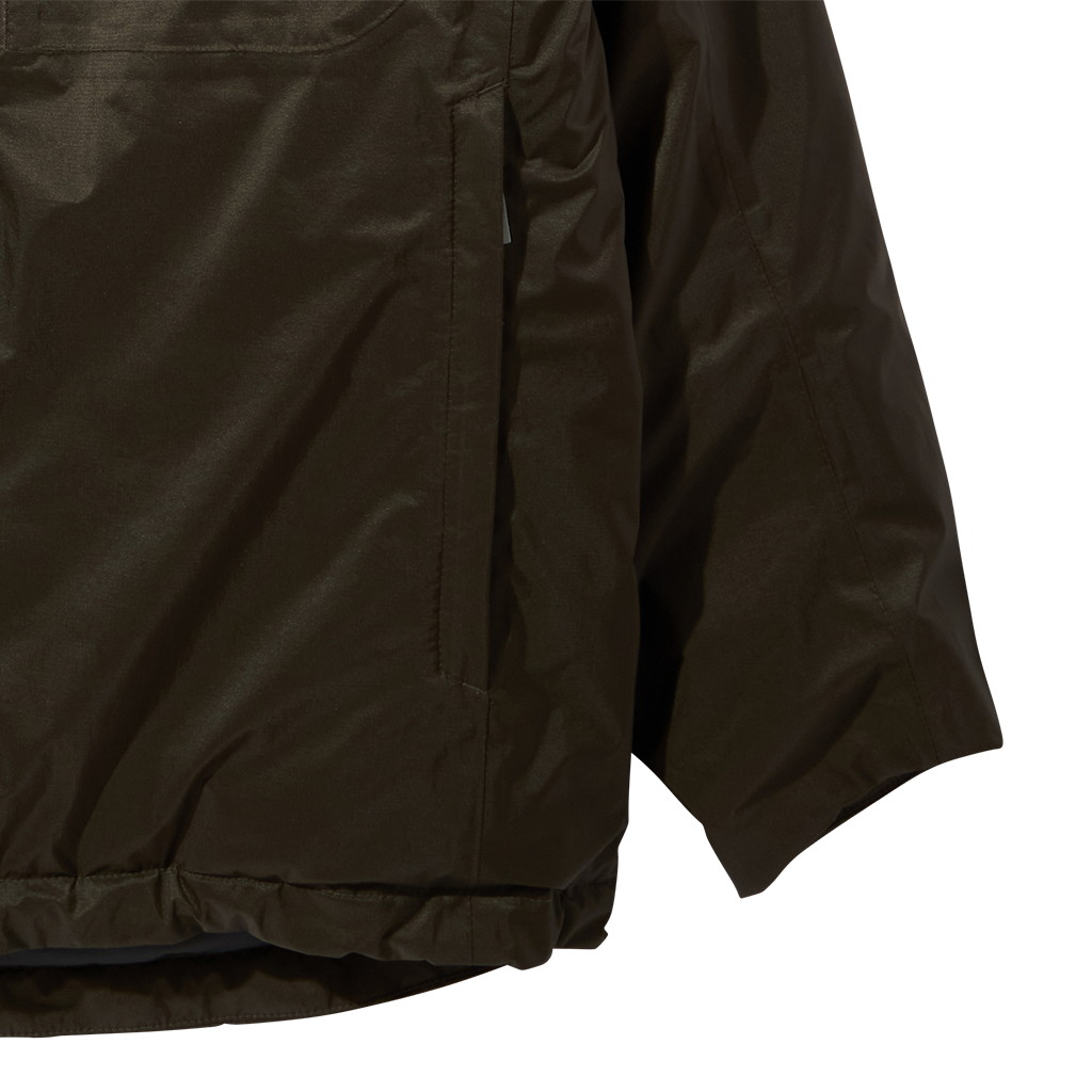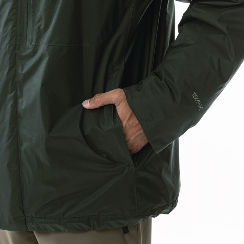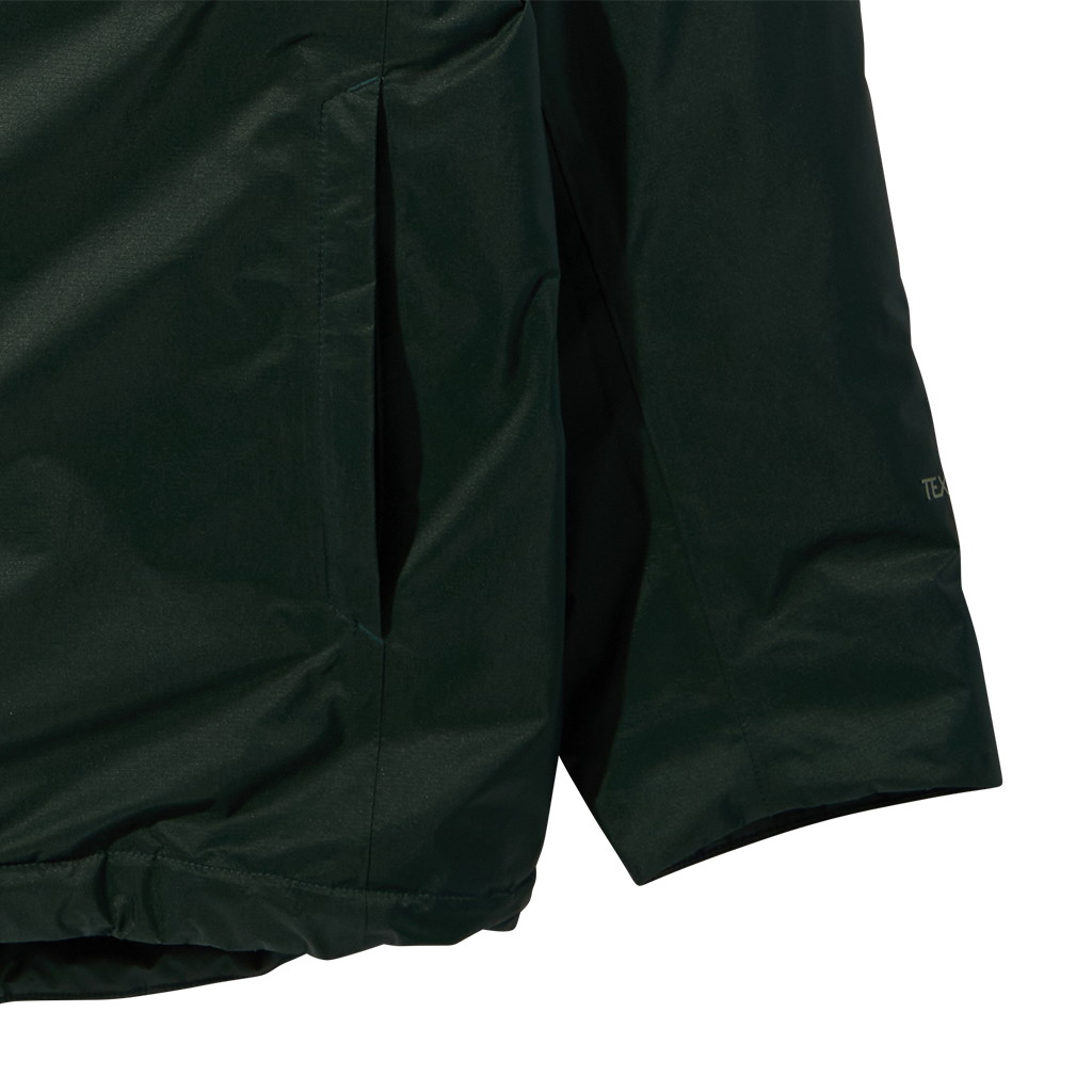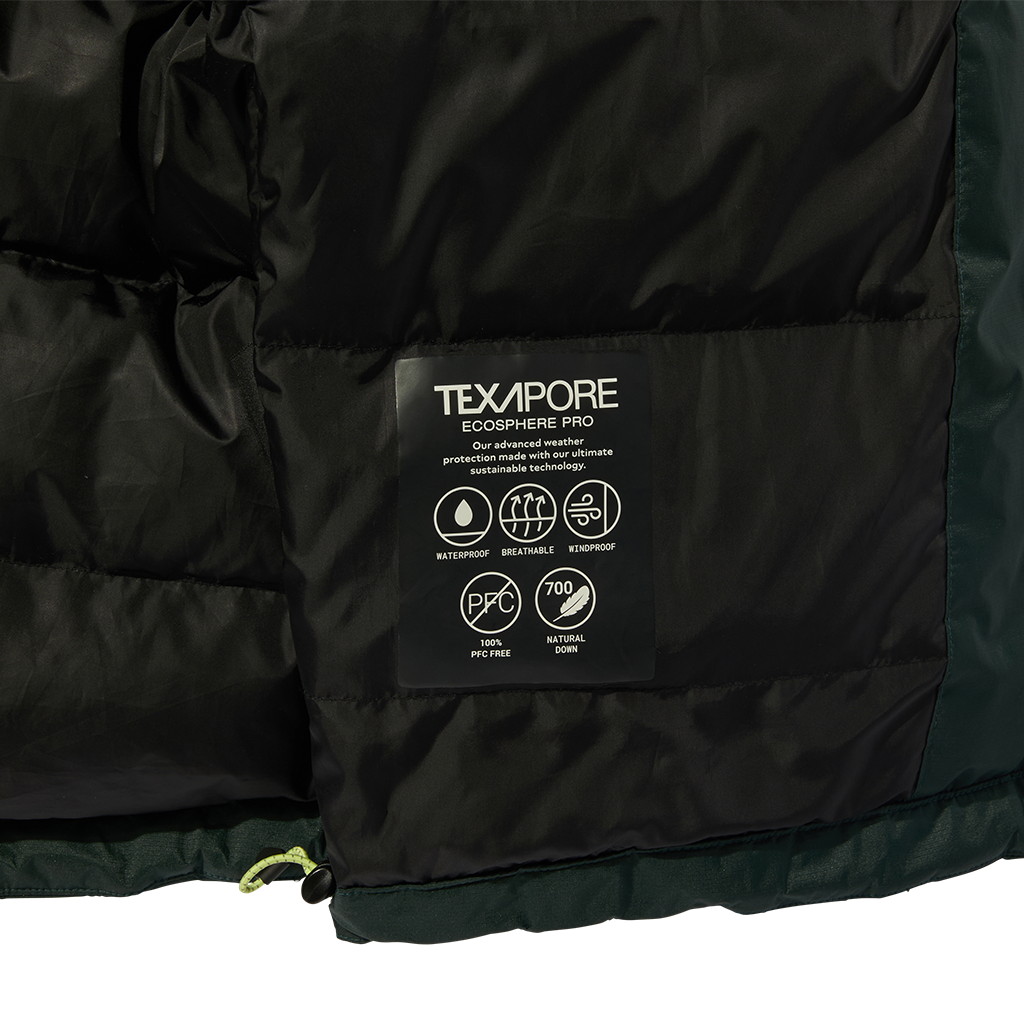 表地は、高い耐水性と透湿性を備えるリサイクル仕様の防水透湿機能、テキサポール・エコスフィア・プロも搭載した、今季ラインナップの中でも最上級の保温性を誇る防水ダウンジャケットです。