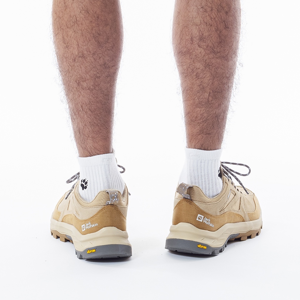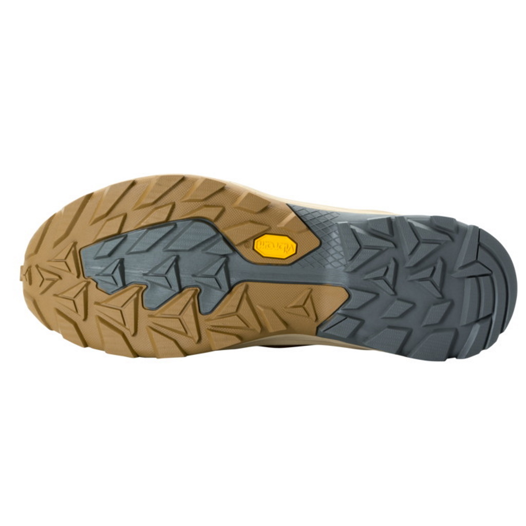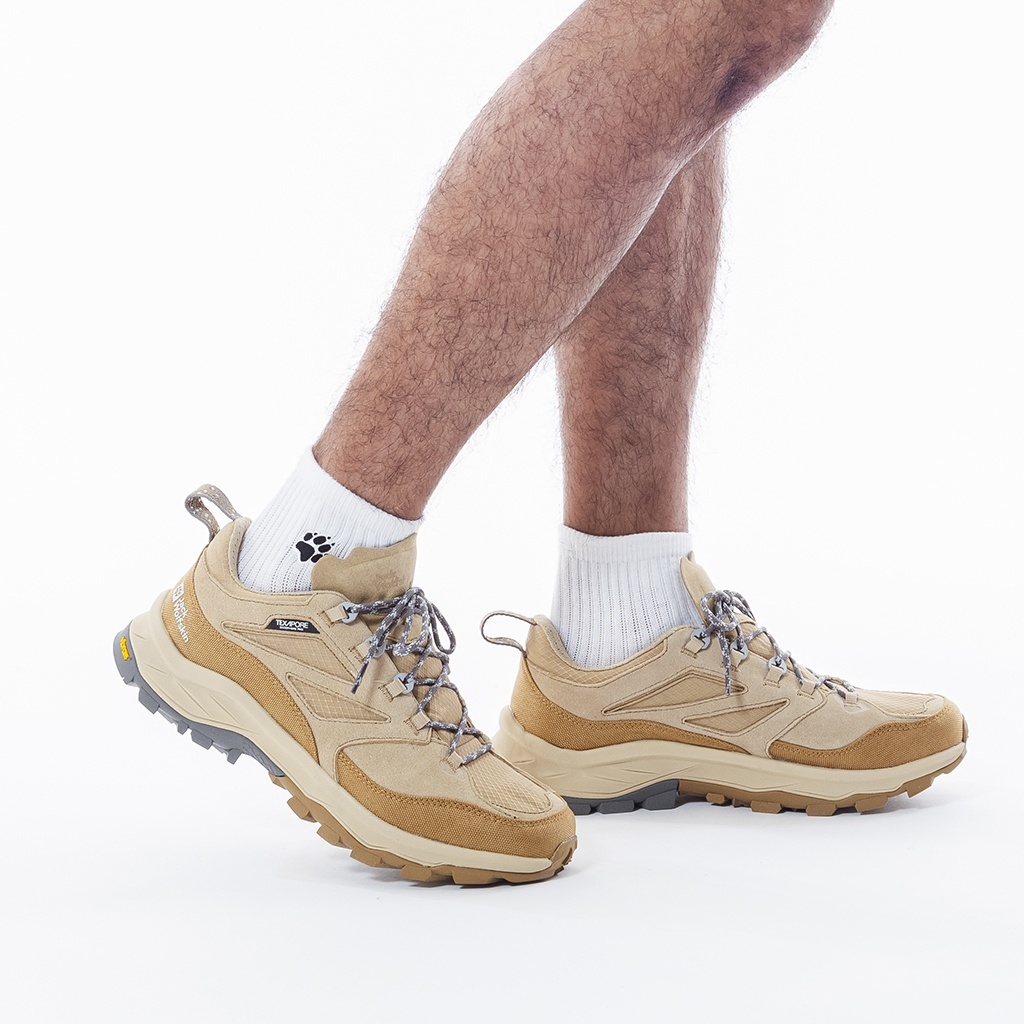 リサイクル素材の TEXAPORE ECOSPHERE PRO は防水性と通気性を兼ね備えており、異素材を組み合わせたアッパーが軽量で快適な履き心地を提供します。