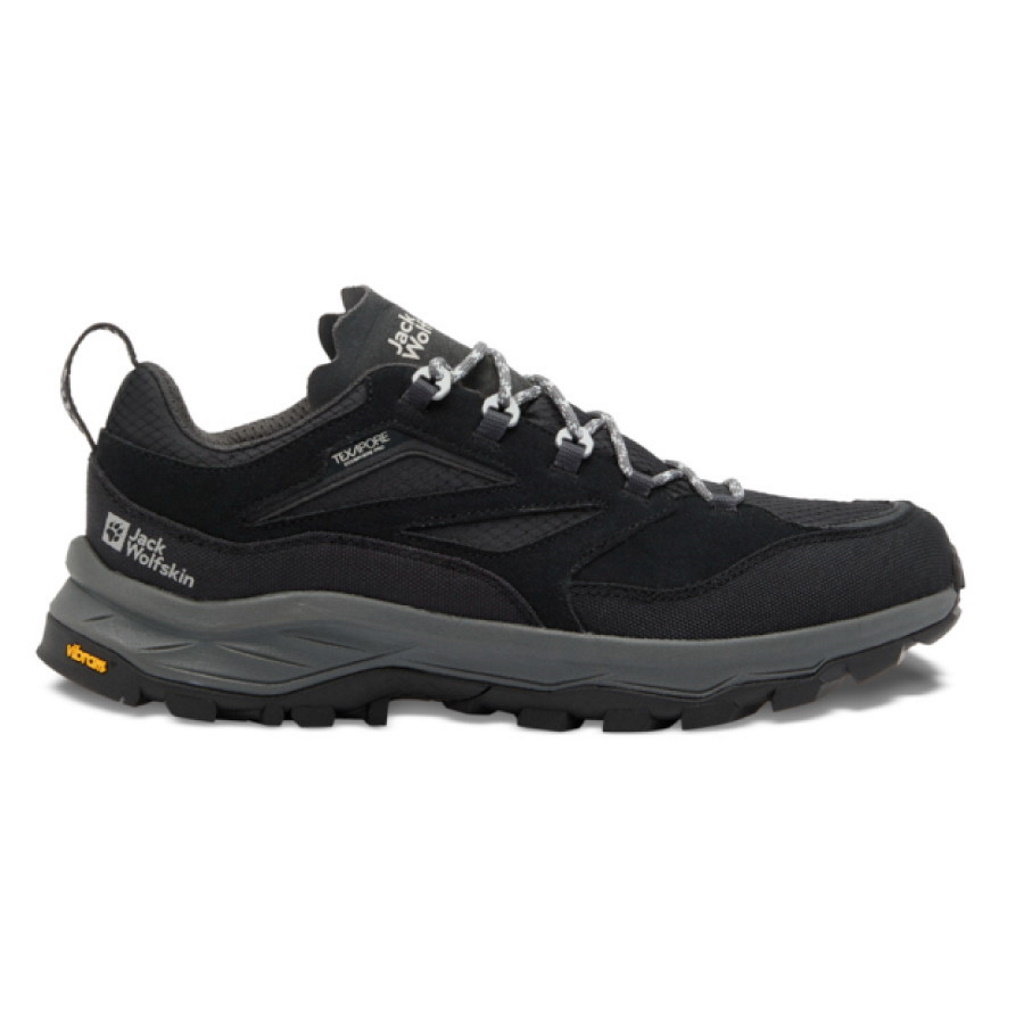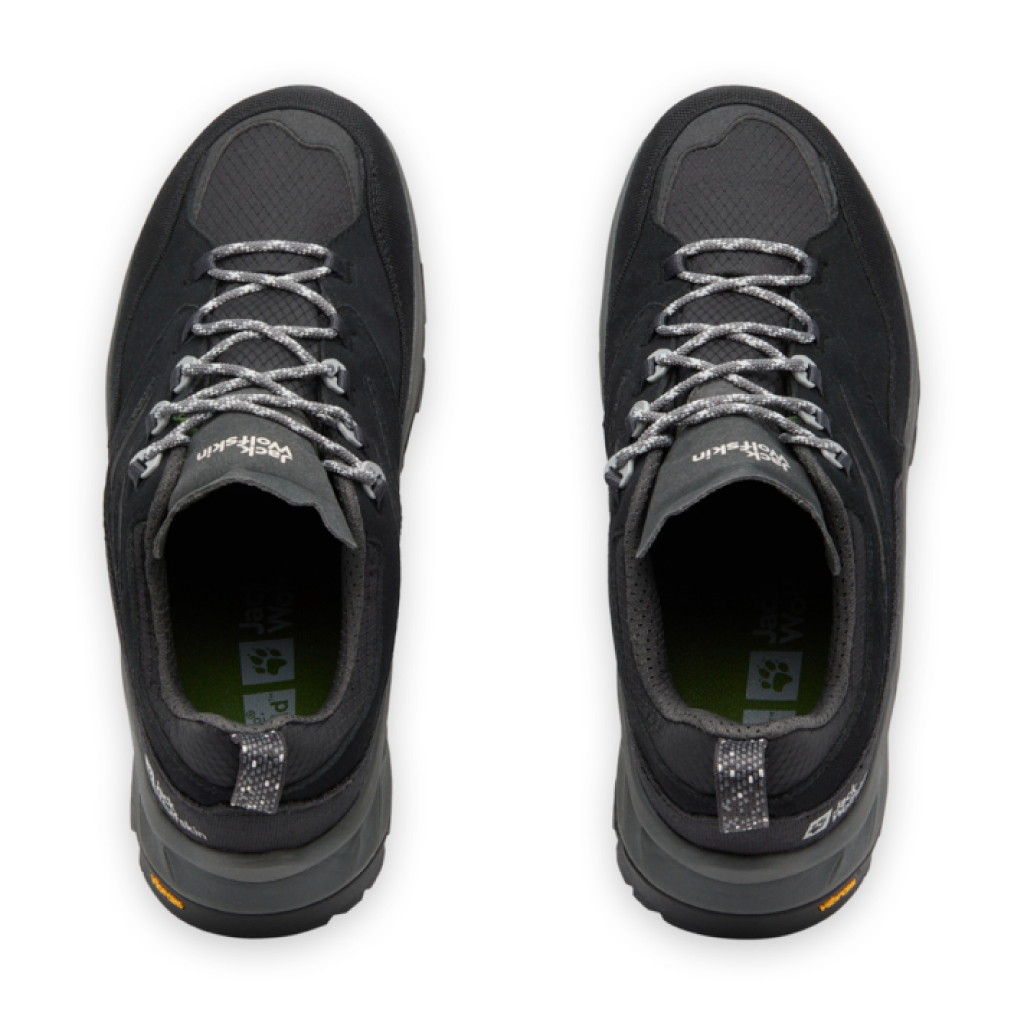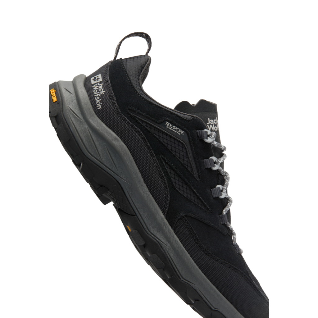 リサイクル素材の TEXAPORE ECOSPHERE PRO は防水性と通気性を兼ね備えており、異素材を組み合わせたアッパーが軽量で快適な履き心地を提供します。