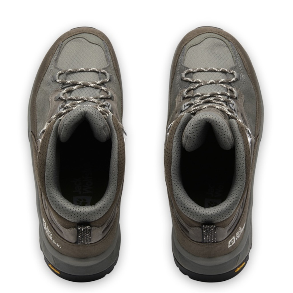 リサイクル素材の TEXAPORE ECOSPHERE PRO は防水性と通気性を兼ね備えており、異素材を組み合わせたアッパーが軽量で快適な履き心地を提供します。