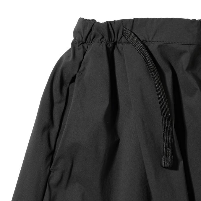 ドレープ感を作り出すシルエット、左右と背面に配したアウトタックで、フェミニンなニュアンスを演出するスカートです。