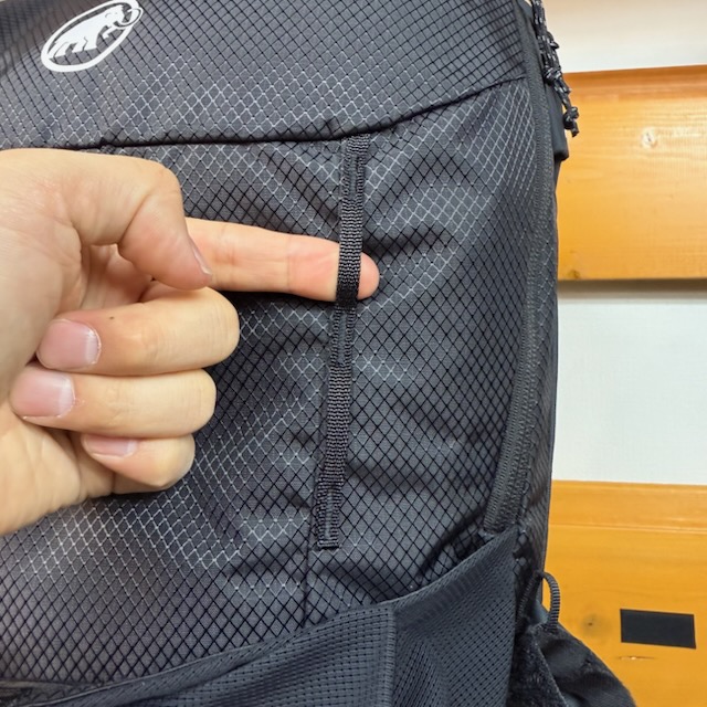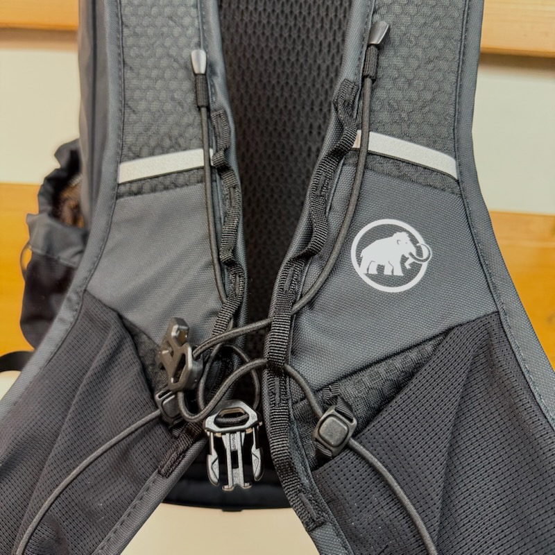 ■左右のショルダーストラップにストレッチメッシュポケット、ドローコード付き
