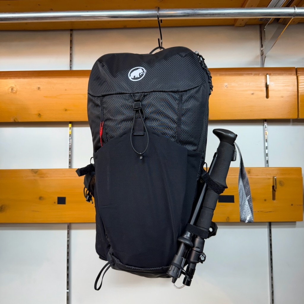 出し入れしやすいフロントメッシュポケットに加え、ウォーターボトル用のサイドポケットが複数配置されているので必要なものがすぐに取り出せ、取り外し可能なレインカバーが雨や雪から装備を守ります。