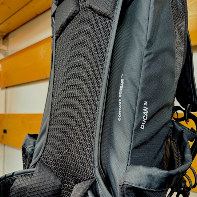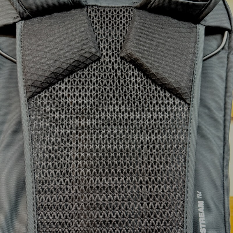 改良型の背面通気システムは、風通しを最大にする構造と接触感を抑えた背面パッドが特徴。