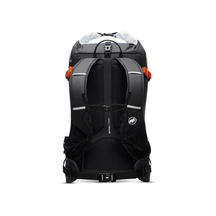 主にリサイクル素材を使用し、ピッケル固定用アタッチメントや、サイドからメインコンパートメントへの容易なアクセス、雪崩装備専用コンパートメントなど実用的な機能が充実。